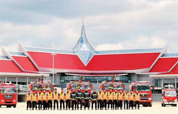 机场不仅在外观上体现了设计亮点,在功能上也展现出了独有特点。航站楼构型划分为主楼、连接体、中心区和指廊4个部分,与航站楼的功能空间和旅客流程契合良好。“旅客可跟随高耸的三角天窗实现清晰顺畅的流程环节,一连串高低错落、起承转合的空间转换,可以带来颇具仪式感的乘机体验。”陆伟说。此外,市政功能配套区还配置了“一关两检”、航食配餐、机务场务、消防中心、急救中心、能源中心、机场油库等完善的配套设施,为后期机场安全运行提供坚实保障。