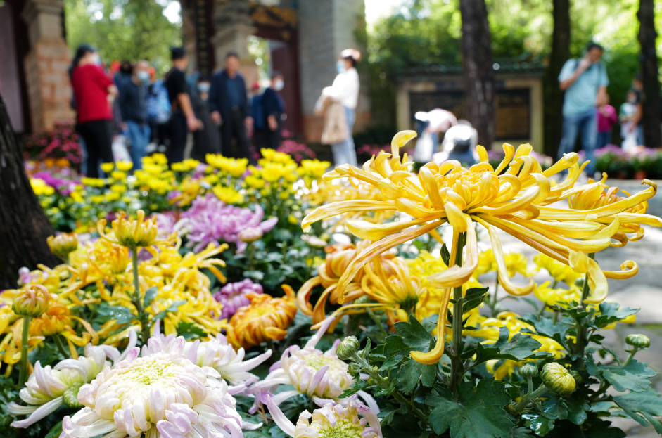 人们在重阳赏菊、饮菊花酒