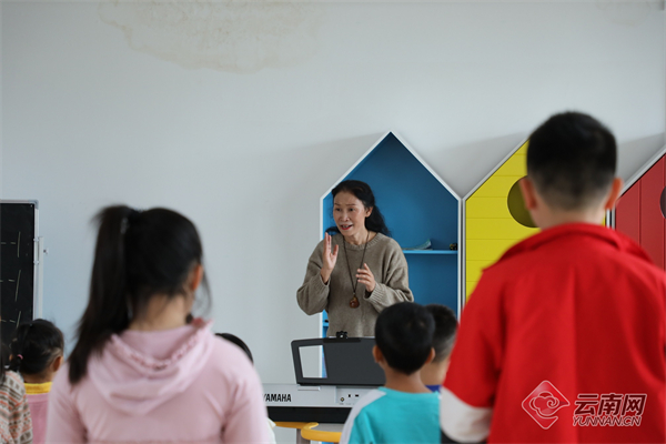 老师正在教凤凰儿童合唱团的小朋友发声 林熙傜 摄