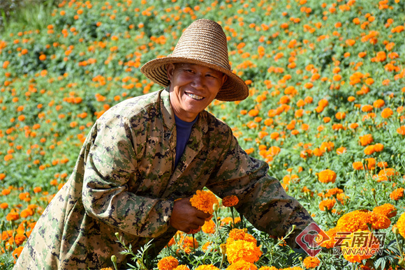 记者到访时,三台铺村委会洒红口村民小组村民马万朝在田间忙个不停。“万寿菊花期较长,每年可采摘6至7茬花,经济效益明显。”谈起种植万寿菊给生活带来的变化,马万朝开心地说,“今年我家栽种的万寿菊,预计收入超4万5千元。通过种植万寿菊,家里建了新房、买了车,生活越来越好了。”