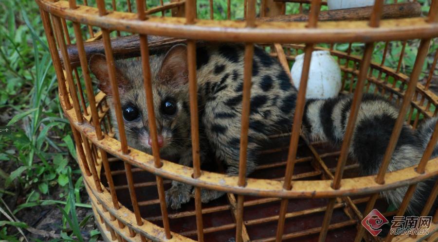 经工作人员仔细检查后发现,该斑林狸精神状态良好,并无明显外伤,在观察一段时间后,放生到了当地的自然保护区内。