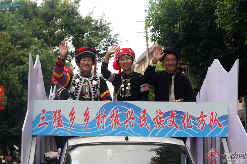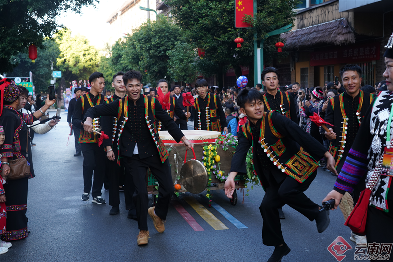 云南网讯(记者 杨吉娟 全婧)云海深处,乐作悠悠,山滇之城,锣鼓喧天。11月19日,红河哈尼族彝族自治州绿春县举行长街古宴礼俗方队、农耕文化方队、乡村振兴民族文化方队(花车)巡游展演。穿着节日的盛装,踏着欢快的舞步,30支方阵队伍依次走上街头,山滇之城在热闹的氛围中沸腾。