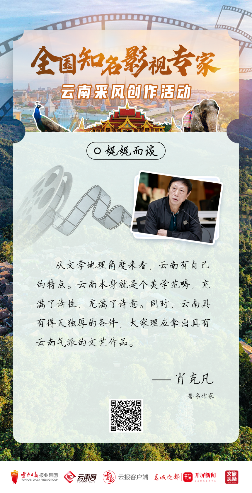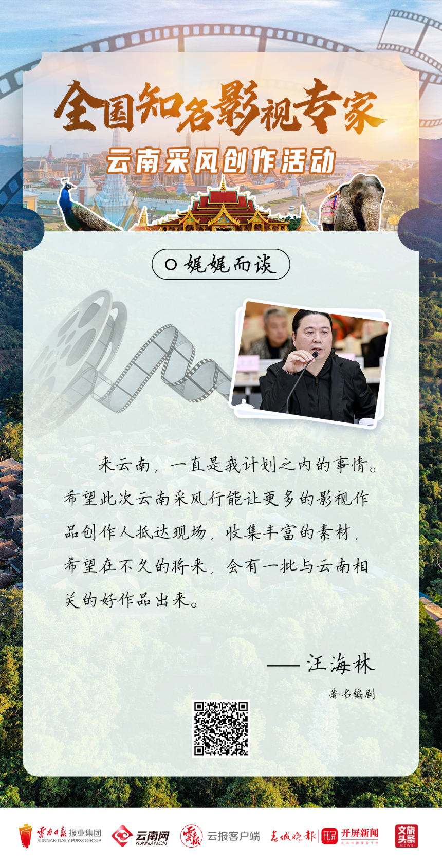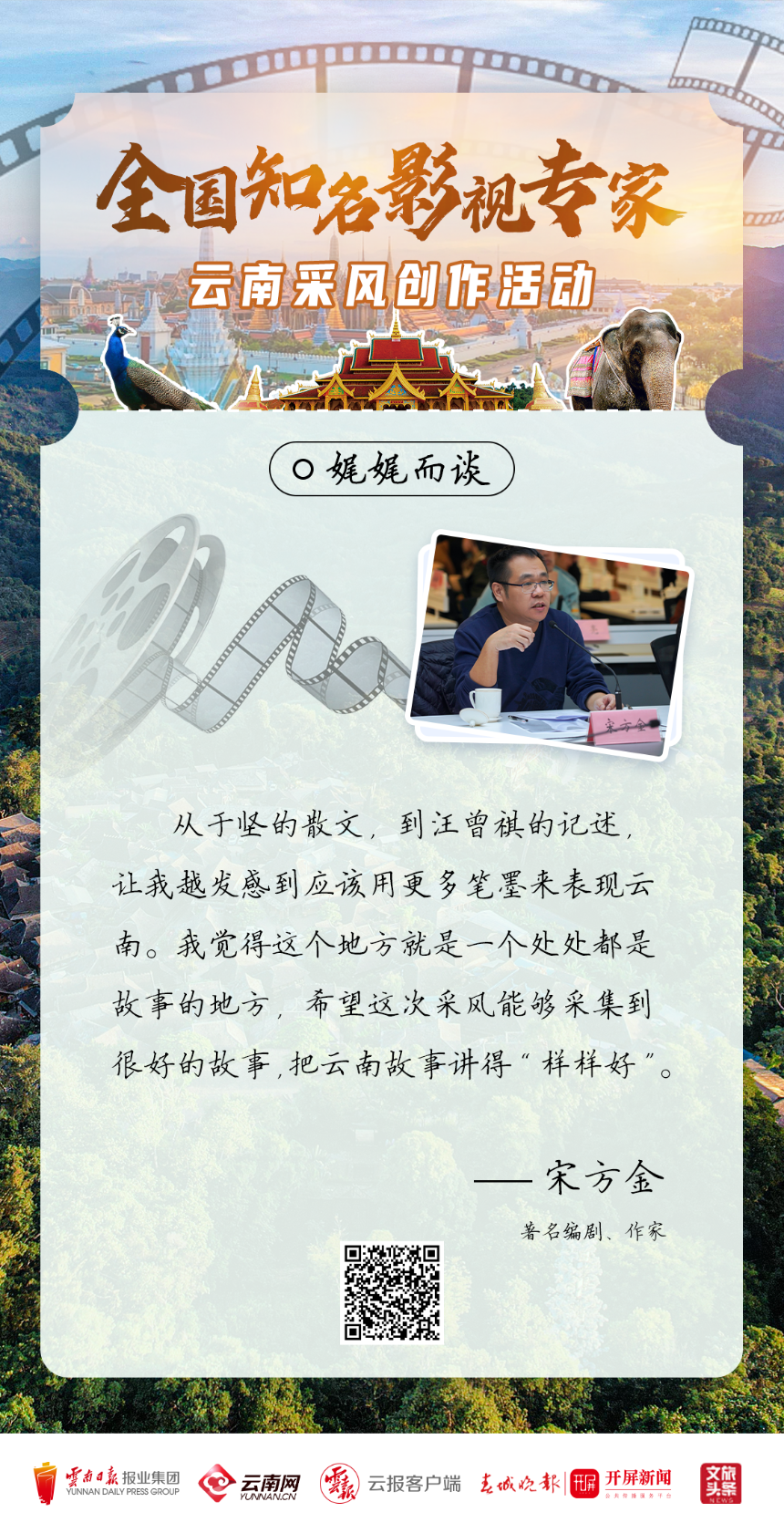 据悉,此次采风活动旨在践行习近平文化思想,推动云南文艺事业和文化产业繁荣,加快云南文化强省建设步伐,讲好中国故事的云南篇章,传播大美中国的云南声音。活动邀请了国内知名编剧、影视界专家赴云南昆明、普洱、西双版纳等地采风。