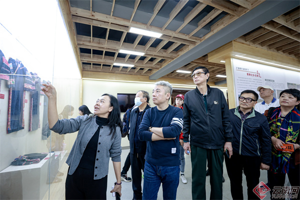 采风团一行先后参观了班利文旅园、班利村民族服饰展以及国家非物质文化遗产保护名录拉祜族芦笙舞、《牡帕密帕》保护传承基地等。在观看班利村民族服饰展时,采风团专家们纷纷被眼前的特色服饰所吸引。拉祜族崇尚黑色,以黑色为美、以黑为主色,其服装大都以黑布衬底,用彩线和色布缀上各种花边图案,使整个色彩既深沉而又对比鲜明,给人以无限的美感。