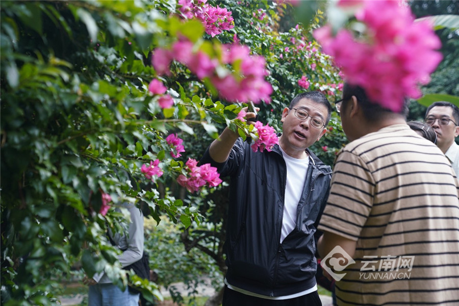 植物是能够与人产生连接的,甚至能感受到人的善意,在导游的带领下,专家们对着一丛植物唱起了《甜蜜蜜》,歌声齐整、神情专注,清奇的画风令旁人驻足,留下噗嗤一笑。