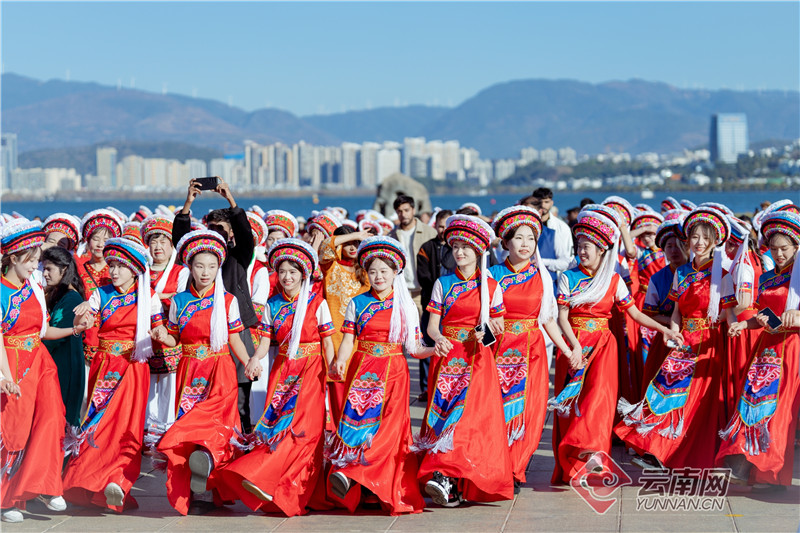 12月21日,一场“苍洱律动·万人起舞”活动在大理白族自治州12个县(市)同步开展,学生、消防员、医护工作者,来自各行各业的市民与游客一起跳起来,南涧《三道弯》、弥渡《绣荷包》、云龙《蹬窝罗》、鹤庆《阿达跳》、剑川《心肝票》等大理州12个县(市)的代表性舞蹈接连上演,各具特色的民族服饰汇集成彩色海洋,大理大学的50余名来自七个国家的留学生也在排练演出中切身感受中国民族文化的魅力。此外,大理州白剧团在大理州群众艺术馆进行民族歌舞剧《七彩云霞》惠民演出,让本土歌舞剧再次绽放光彩。在南涧彝族自治县,“南涧彝族跳菜”这一国家级非遗项目,作为将饮食文化与舞蹈、音乐相结合的一项民俗与仪式,正通过表演的形式让更多游客看到,在冬樱花盛开的时节,无量山樱花谷景区举行了“跳菜王子”争霸赛,将民间艺人、非遗传承与旅游融合起来,拓展了全民参与舞蹈季的广度。