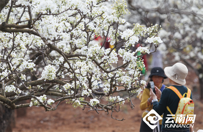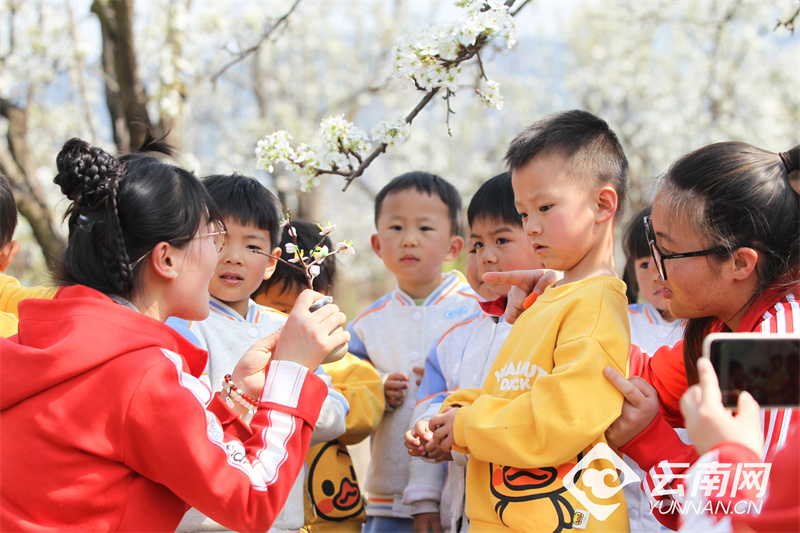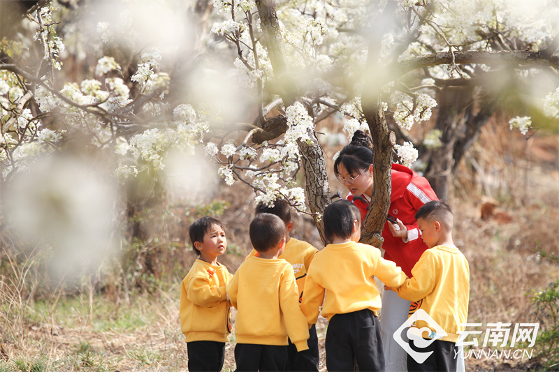 “忽如一夜春风来,千树万树梨花开。”阳春3月,正是春城昆明梨花盛放之时。近日,呈贡区万溪冲的7000多亩梨花盛放,雪白的花簇如雪挂满枝头,吸引众多游人前来踏春赏花,呈贡第三幼儿园万溪校区的老师和学生还来到这里组织了一场“梨园春游”活动,将万亩梨园作为了学生室外的生动课堂。据悉,今年第十二届“万溪梨花节”活动将于3月16日开幕,同市民、游客共赴一场呈贡梨花之约。
