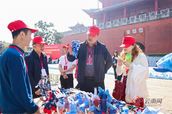 在柠檬飘香羊排、太极玫瑰乳扇卷等浓郁地方特色的美食前,游客一边拍照一边与厨师“取经”。来自昆明的袁女士介绍:“我是被‘喜鹊登梅’的面塑吸引过来的,没想到越走越香,边逛古城边享受美食,这一趟来得真值。”