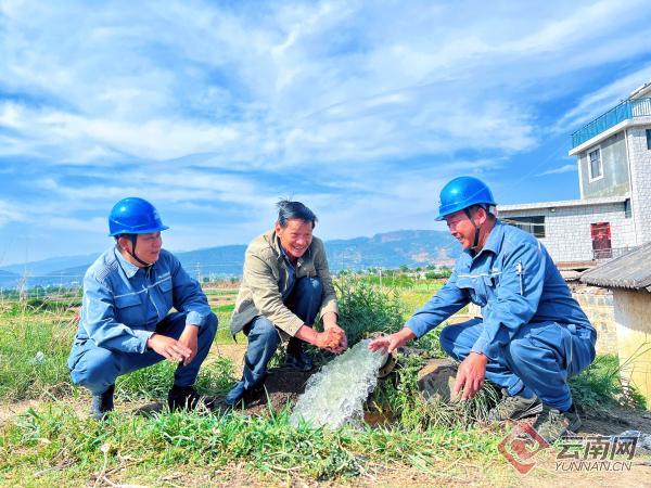 南方电网云南大理弥渡供电局为弥渡县石咀村村民快速解决用电需求,清澈的水流源源不断地流入田地。宝若曦 摄