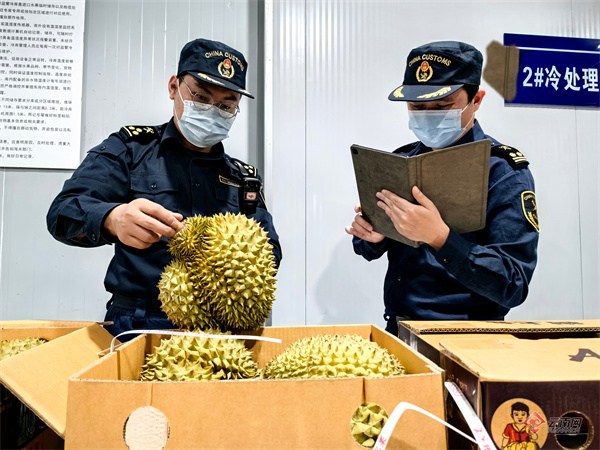 4月21日,一批泰国榴莲经昆明海关所属勐腊海关关员监管验放后,继续搭乘中老铁路“澜湄快线”国际货物列车,运往国内市场,这是今年以来经中老铁路入境的第125批榴莲,进口量较去年同期增长超7倍,截至目前,昆明海关累计监管中老铁路进出口货物已突破800万吨。