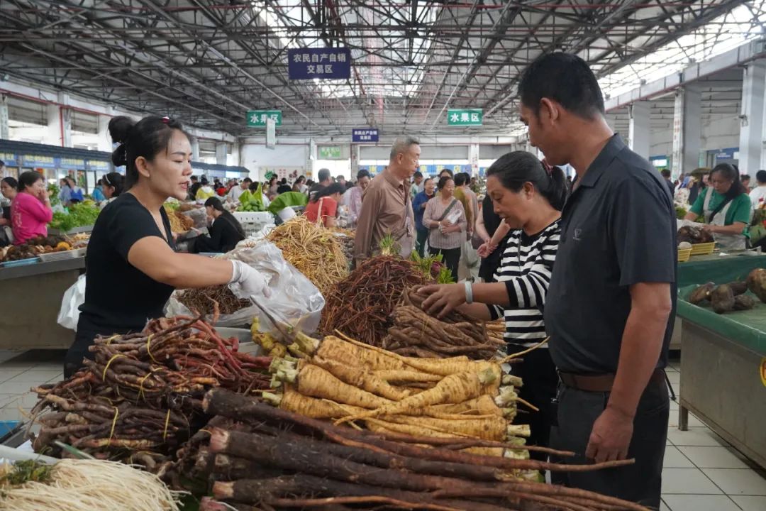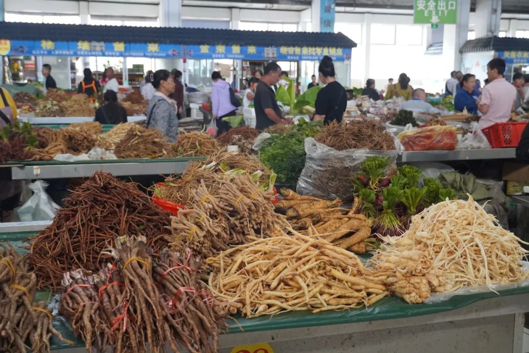 牛蒡根、党参等百草根琳琅满目