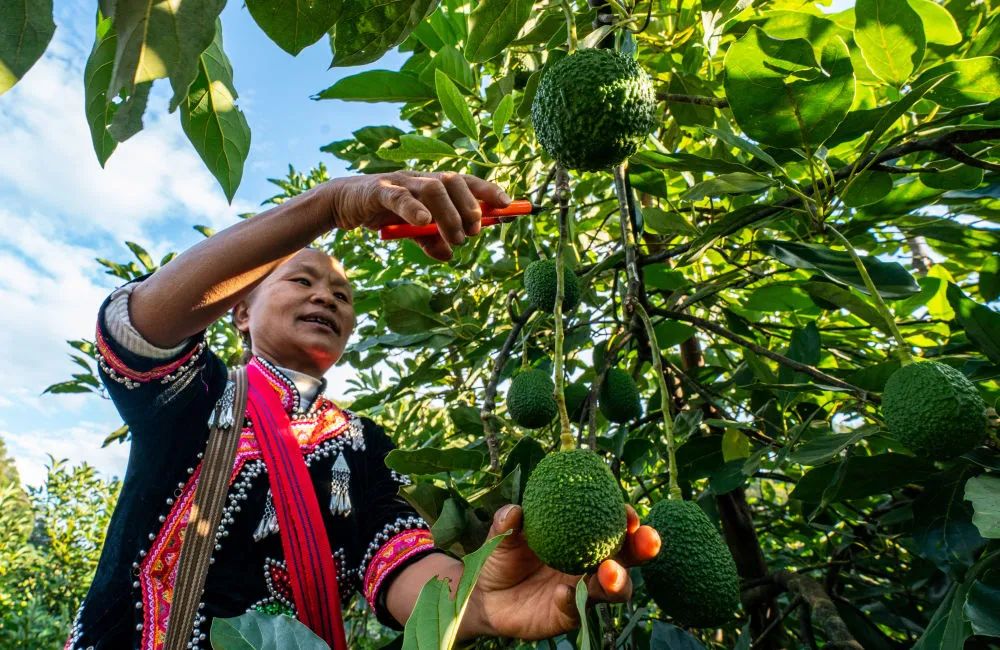 云南普洱孟连的农户正在采摘“致富果”——牛油果。新华社记者 江文耀 摄