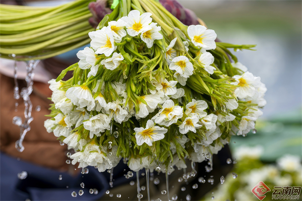 “海菜花极为娇贵,只能在透明度很高的水质里生活,被称为‘水质试金石’,产量低,且保质期只有2-3天,成为游客带不走的‘鲜’,只能在大理本地品尝。”张震宇告诉记者,海菜花曾广泛分布于云南、贵州、广西等地的湖泊、河流和池塘中,但是由于人类活动等影响,分布面积逐渐缩小。