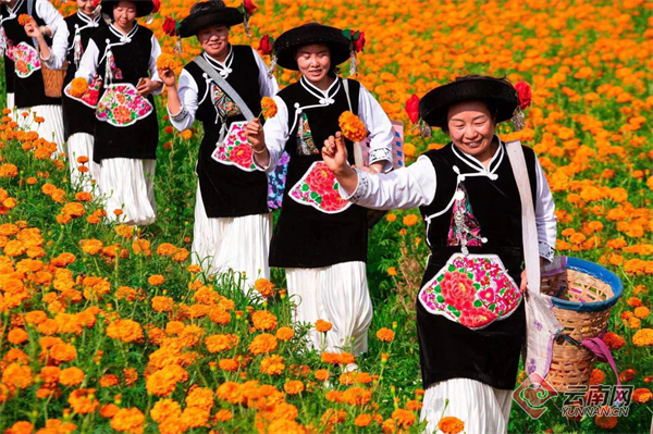 在气候适宜、光照充足、水土丰沛的红河哈尼族彝族自治州,积极探索出了“万寿菊+”的产业模式,让群众真正地实现甜了日子,富了口袋。蒙自市以“企业+合作社+农户”模式,着力打造万寿菊产业化发展,各乡(镇)共种植万寿菊4.3万余亩;建水县面甸镇在“企业+农户”的发展模式下,2021年,建水博浩生物科技有限公司在这里建立万寿菊种植、储存及初加工基地。