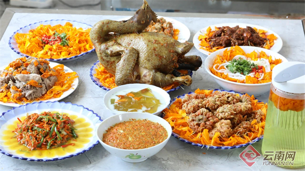 保山市施甸县何元乡大坡脚村的一桌色香味俱全的万寿菊宴。 供图
