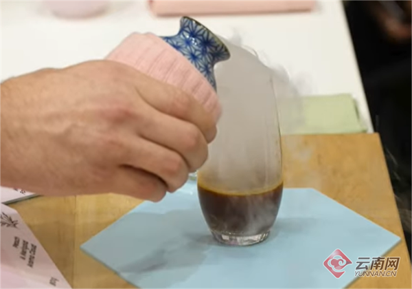 在2024WBC世界咖啡师大赛上,一款获奖咖啡的其中一个步骤就是将白桃万寿菊发酵汁倒入干冰中,再将含有香气的干冰雾倒入咖啡中,增加咖啡的香气体验。