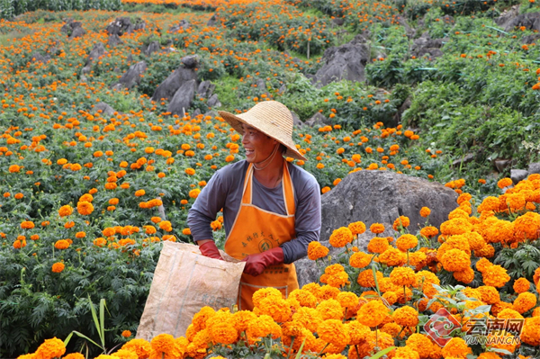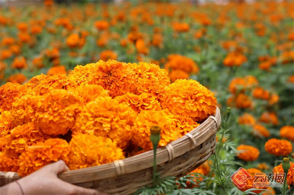 “论斤贩卖的万寿浪漫花海等你来打卡。”“禄劝五千亩万寿菊花海模式上线!”“南涧万寿菊花开成海!”进入炎炎七月,云南各地纷纷迎来了茬花采收季,万寿菊鲜艳盛放的消息也随之席卷而来,冲上热搜,吸引了无数网友前往“打卡”拍照。