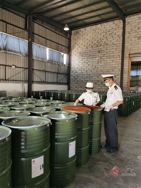 2022年7月,文山州一批万寿菊浸膏经天保海关检验合格后,顺利出口至北美洲,这是文山万寿菊浸膏首次出口,标志着文山又一特色农产品走出国门。 张兴万 摄