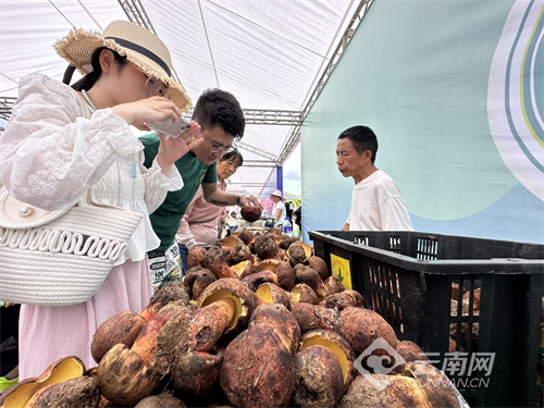来到菌类商品交易及名特优产品交易区,各色商品琳琅满目,野生食用菌鲜货交易区更是人潮涌动,引得游客驻足拍照,争相购买。“今天我们带了松茸、鸡枞菌、牛肝菌等多个品种过来售卖,上午十一点左右基本就卖完了,今天人流量大,生意很好。”来自易门县龙泉街道中屯社区的孙姓野生食用菌销售商表示,菌交会的举办为易门县的野生食用菌打造了广阔的销售平台,每年从6月初开始销售食用野生菌,持续至十月中旬,总计售卖数量达500到600公斤,是家庭的主要收入来源。