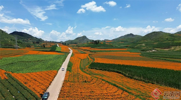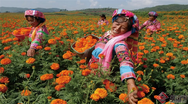 村民喜迎丰收采摘万寿菊 云南工投集团 供图
