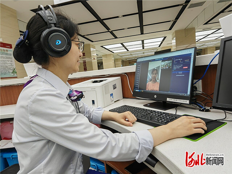 8月7日,保定市行政审批局视频导办帮办专席刘思琪通过视频导办帮办系统,“面对面”为办事群众解答问题。河北日报记者 李连成摄