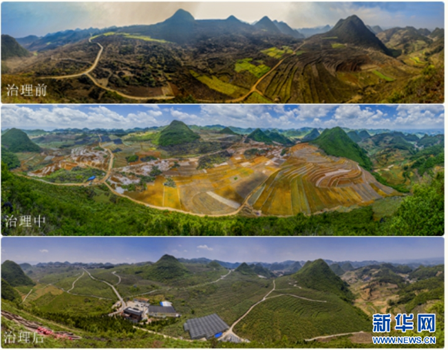 西畴县“三光片区”治理成效(拼图)。新华网发(文山州林业和草原局 供图)