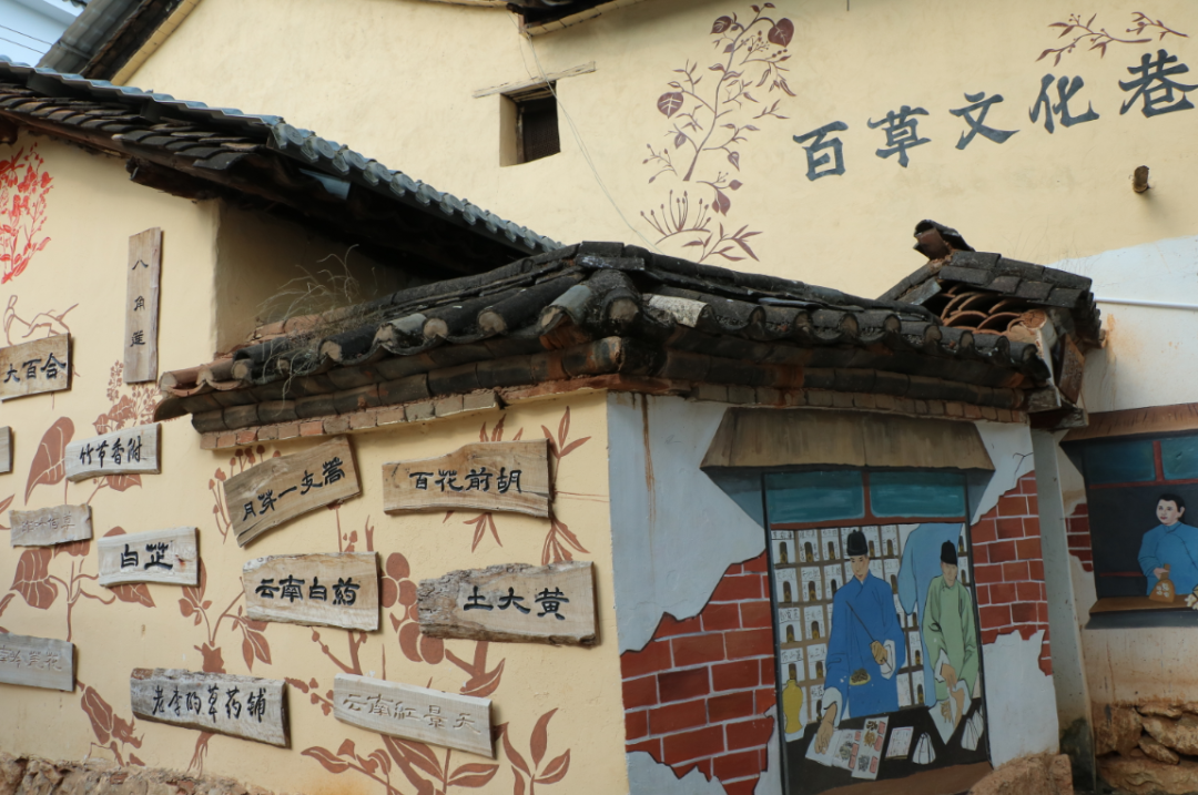 一村一特色,文化是灵魂。在与卧龙古渔村隔湖相望的西山区碧鸡街道百草村,中医药文化元素遍布村中各个角落。百草文化巷以壁画形式科普药材知识、民居小院中种植多样中药、曲焕章故居展示着中医药的历史……西山区观音山社区百草村居民小组组长王学介绍,突出中医药文化传承这一IP,该村正朝着打造“百草”药膳养生谷的方向发展。“滇池沿岸乡村改造提升工作开展以来,村里开起了11家以养生药膳为特色的农家乐,家家生意都好。”王学说,随着村庄名气的打响,游客数量也随之增长,最多的时候一天有8000多人。村庄人气旺了,许多在外打工的年轻人回流村中,开办了民宿、咖啡屋、面包店等,实现了就近创业创收,也丰富了村庄业态。