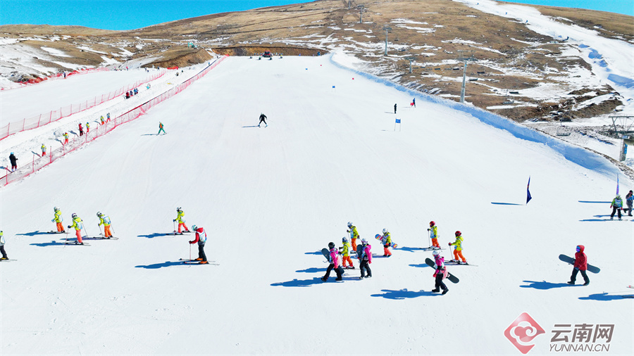 白雪铺满会泽大海草山滑雪场 记者 张雯摄
