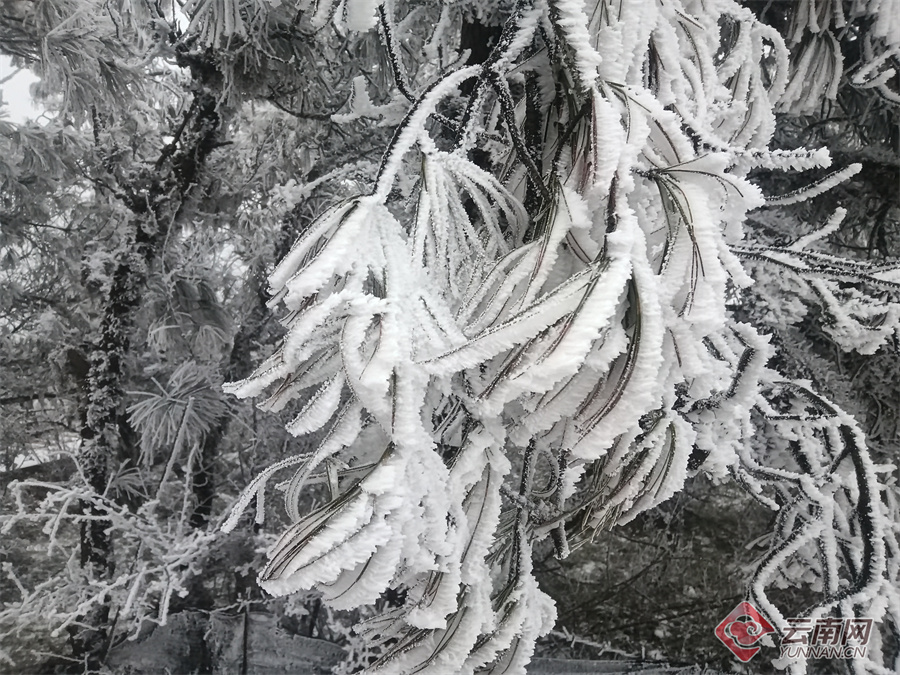 澄江梁王山雾凇 通讯员 刘贵能 摄