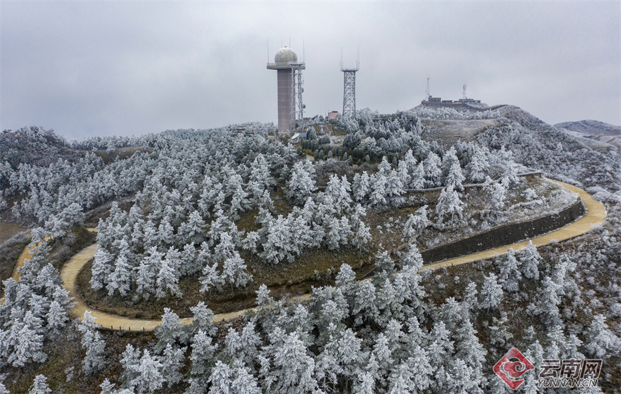 澄江梁王山雾凇片片 通讯员 刘贵能 摄