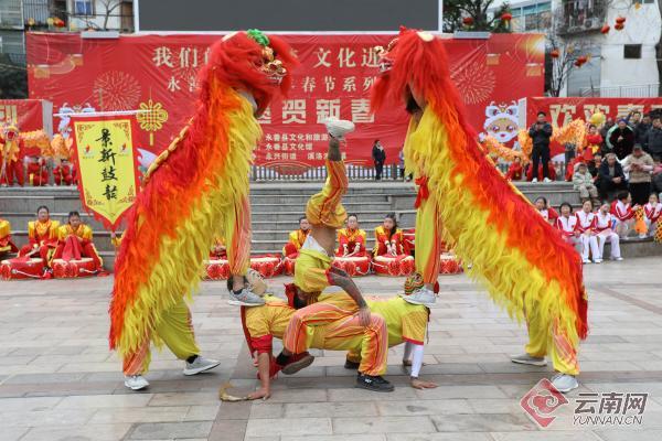 1月31日,大年初三,由云南永善县文化和旅游局主办,县文化馆承办,永兴街道办事处、溪洛渡街道办事处协办的“我们的中国梦·文化进万家”永善县2025年春节系列活动之一的“非遗贺新春、年味别样浓”展演精彩启幕,舞龙舞狮队和文艺团体联袂为广大市民和游客送上了一道道精彩纷呈的“文化大餐”。