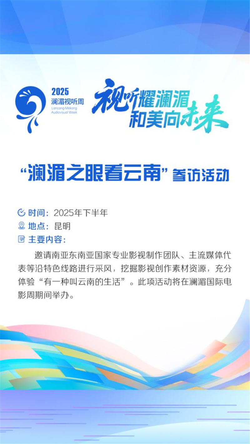 2025年澜湄视听周的各项活动,是文化交融的创新实践。镜头聚焦澜湄风情,创意激发无限灵感。一场汇聚多元魅力的视听盛宴即将启幕!