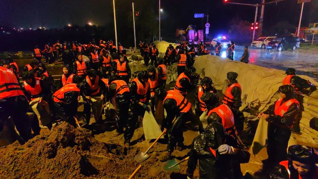 2025年7月,武警北京总队千余名官兵在密云区宁村新桥构筑堤坝。新华社发(苏鹏 摄)