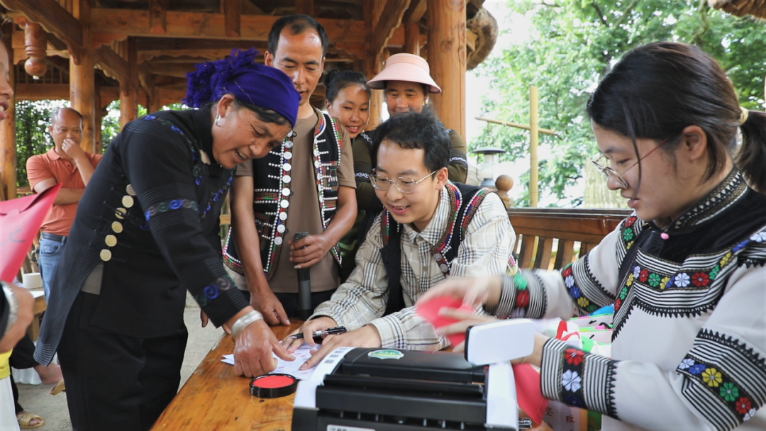 阿者科村分红现场,村民签字、按手印。陈萍 摄