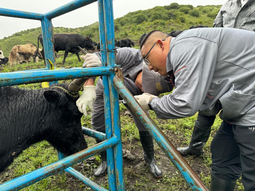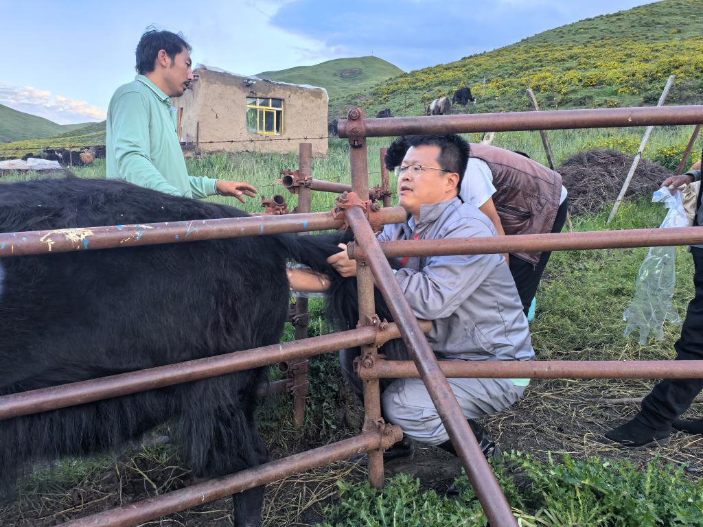 潘阳阳介绍,自2013年开始,科研团队就在当地开展人工授精、胚胎移植、杂交育种等多项技术服务。科研团队通过“娟姗牛人工授精改良甘南牦牛”项目培育出杂交娟犏牛。相较于普通牦牛,这种牛产奶量提高10倍,产肉量提高2倍,繁殖效率从3年2胎提高到1年1胎,有助于减畜不减产。