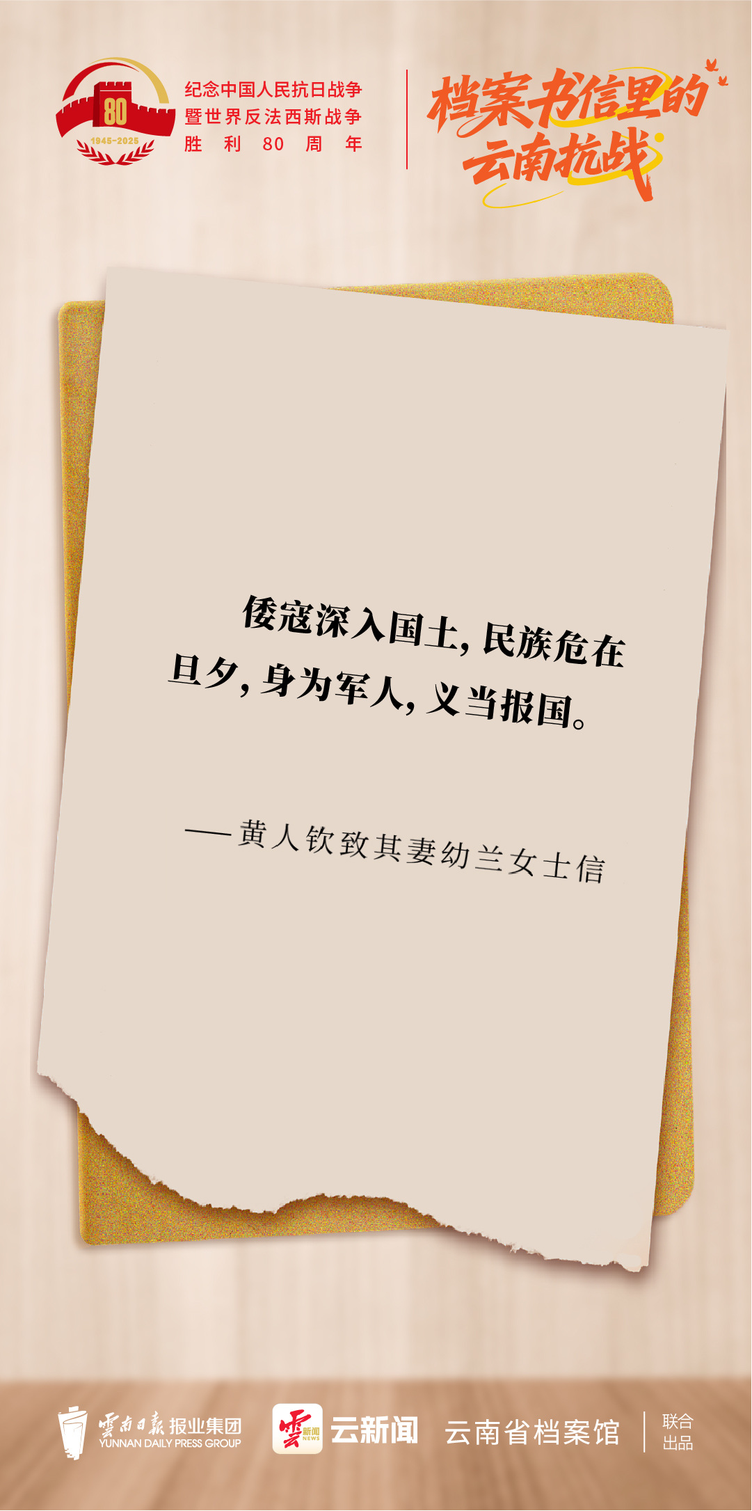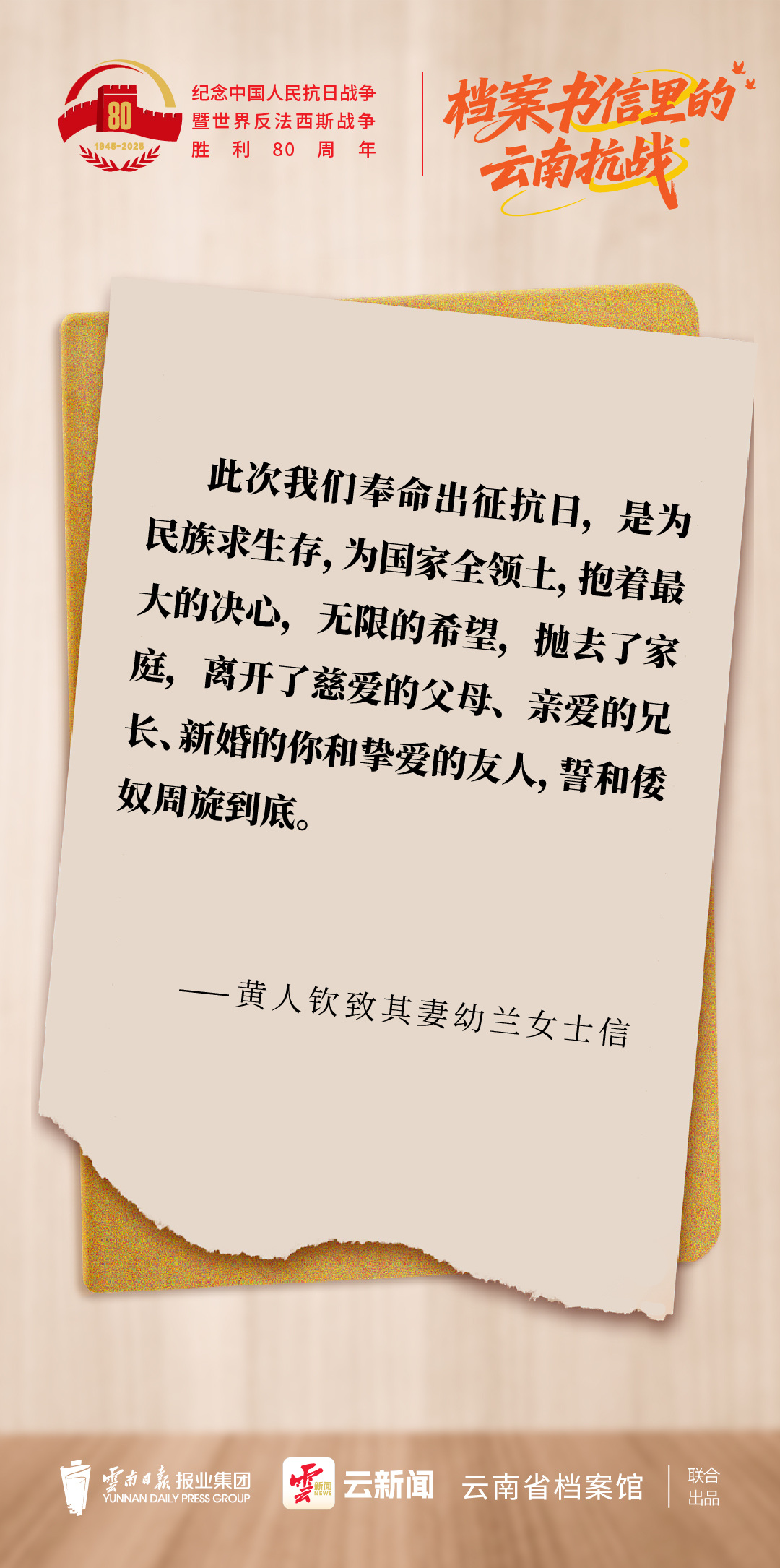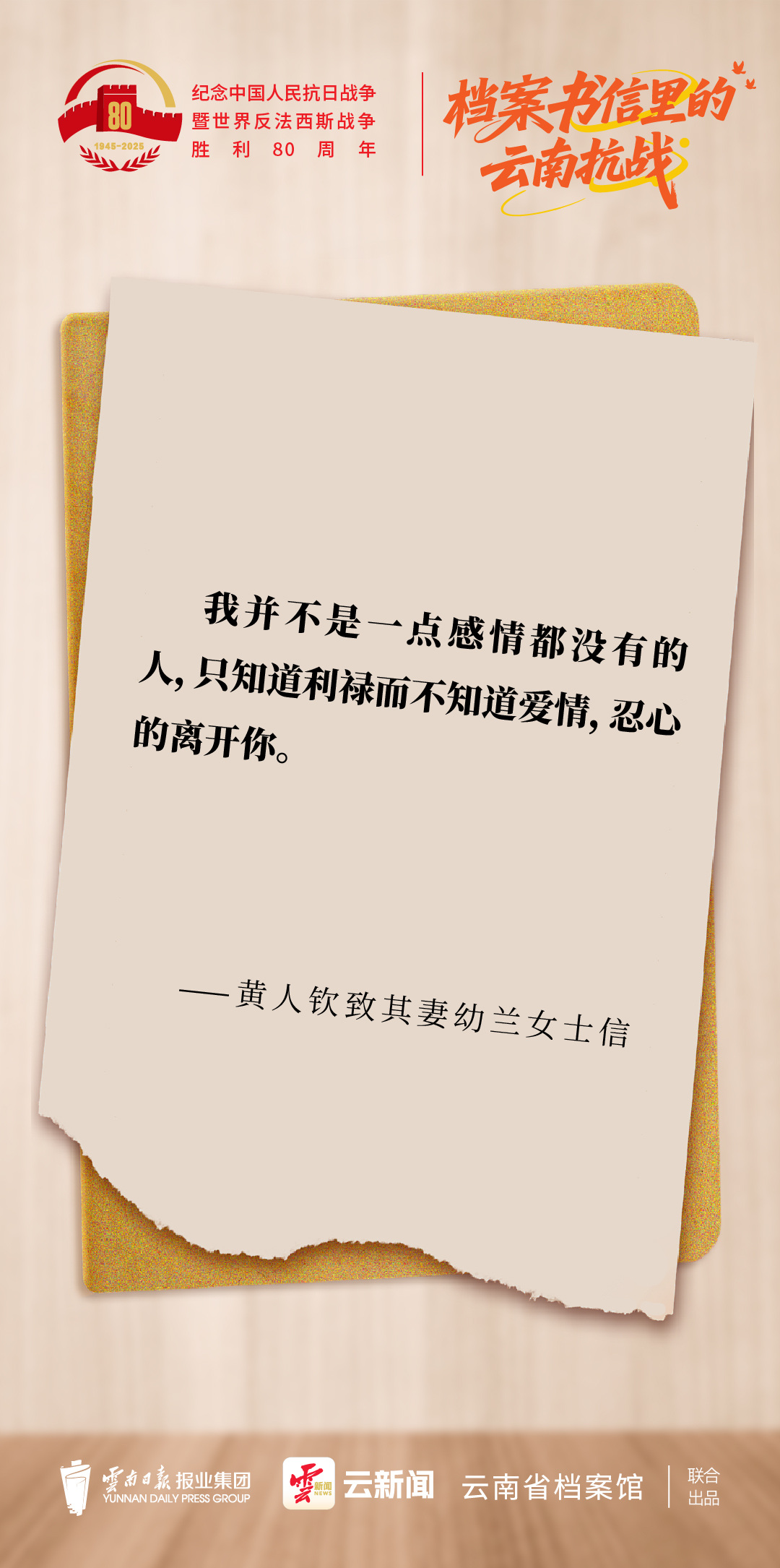 云新闻联合云南省档案馆推出“档案书信里的云南抗战”特别策划,从尘封的纸张里回望滇西抗战,在字里行间触摸那段永不褪色的热血岁月。前事不忘,后事之师。伟大抗战精神,将永远激励中国人民克服一切艰难险阻、为实现中华民族伟大复兴而奋斗。今天,来看爱国军人黄人钦致其妻幼兰女士的一封信。