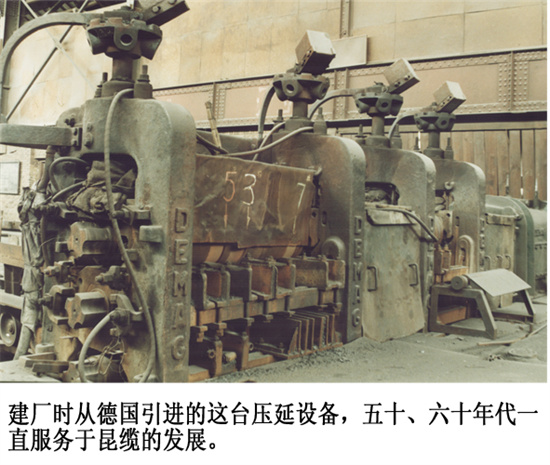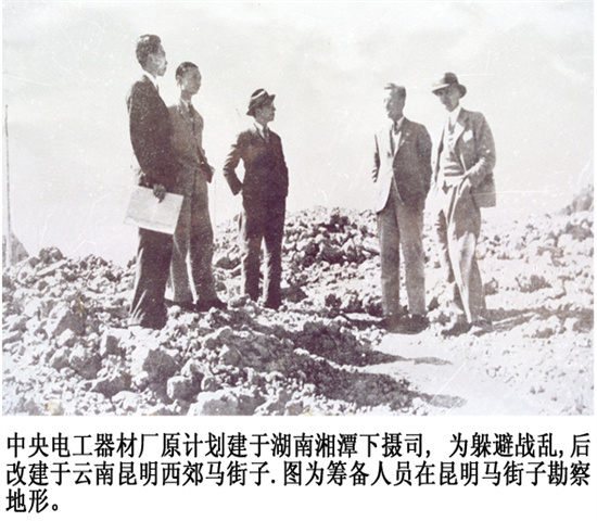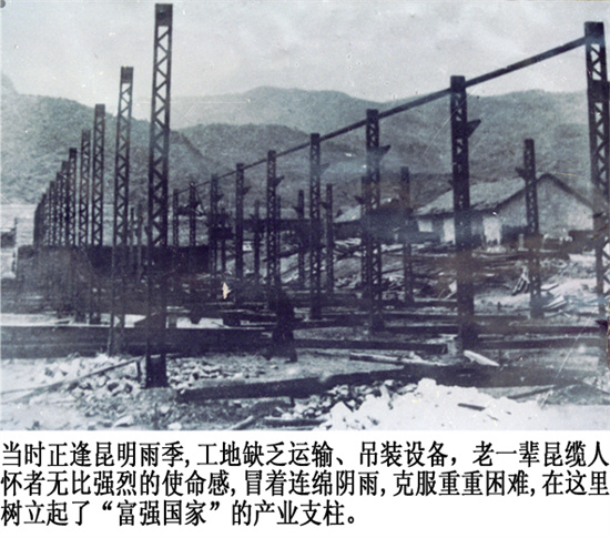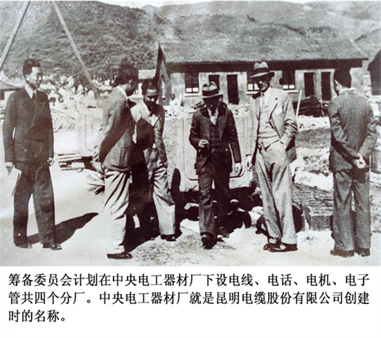 20世纪30年代初,在抗日救亡和“实业救国”浪潮推动下,中央电工器材厂筹备委员会成立,选定昆明西郊马街子开始建厂。面对一无技术、二无设备的艰难局面,老一辈昆缆人远赴英、德学习线缆制造技术,引进国外先进设备,职工自己动手,用简陋的工具,肩扛背驮,克服巨大困难完成建厂。