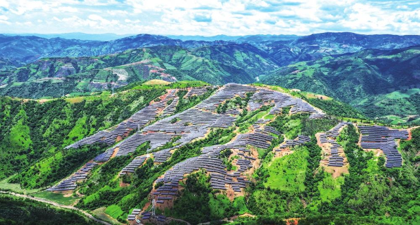 该项目选址在海拔1100米至1700米的喀斯特山区,40度以上坡度区域占比达60%,给项目建设和材料、设备进场带来了极大困难。建设初期,建设者顶着寒风,52天抢出14.2公里施工道路,新建8公里、改扩建6.2公里,把天堑变成通途,不仅解决了光伏板和大型光伏设备进场的首要难题,也为当地村民的农业生产提供了便捷通道。