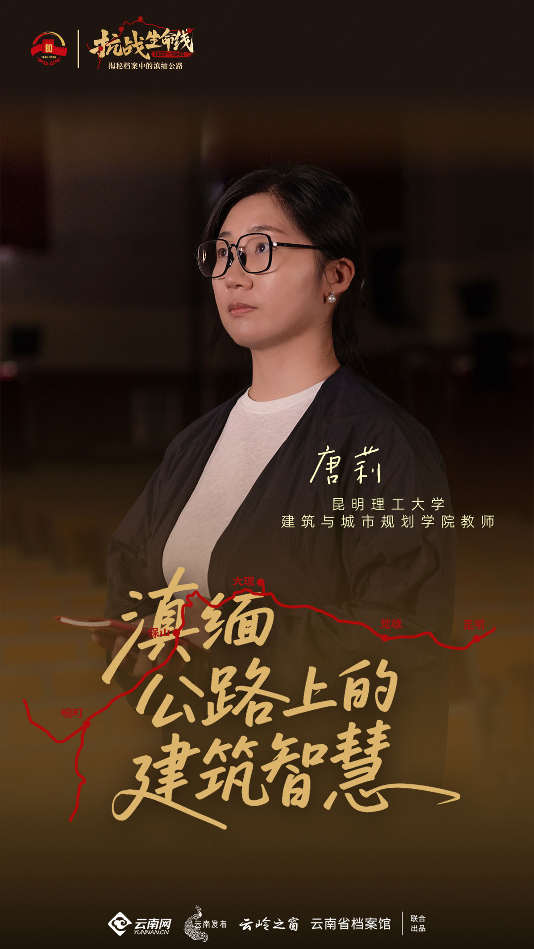 唐莉博士现任教于昆明理工大学建筑与城市规划学院,长期专注于中国近现代建筑史研究,尤其对抗战时期建筑技术与滇缅公路沿线设施有深入考察。面对镜头,她目光专注,讲述细致而充满洞察。