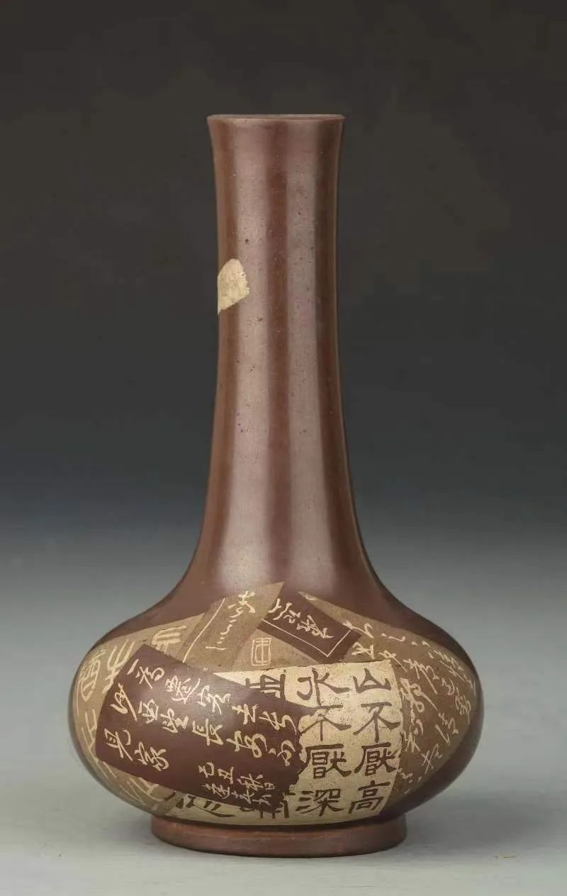 建水紫陶刻填残帖长颈瓶 图源:“清华大学艺术博物馆”微信公众号