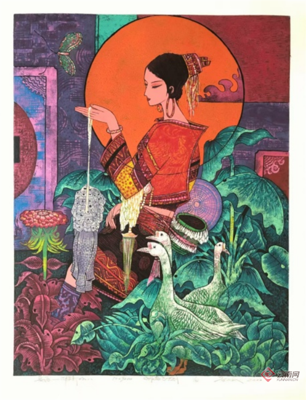 运用这一独特的技法,身为傣族的白绍斌创作了近百幅表现玉溪新平花腰傣和西双版纳水傣风土人情的作品。这些作品色彩浓郁、刀法精准、层次丰富、人物栩栩如生,不仅再现了民族文化与生活场景,更传递出深深的乡土情怀,被多家艺术机构和基金会收藏。