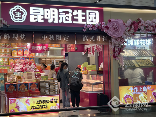记者看到,几乎所有商铺都在显眼位置挂起了火红的国旗,“中国红”成为最亮眼的主色调。不少旅客手捧刚刚购买的云南鲜花,鲜花的芬芳与节日的喜悦在空气中弥漫。此外,售卖滇式月饼的知名店铺前也吸引了不少游客驻足,将这份独特的“云南风味”作为旅途中的伴手礼或与家人分享的节日礼物。