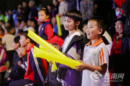 夜幕低垂,赛事在秋雨洗尘后热闹开幕。天公作美,雨歇云散,龙川江畔晚风轻送菌香,上百名参赛者与上千名观众共聚龙泉广场,共享欢乐时光。开幕式上,彝族文化与体育精神交相辉映。身着彝族盛装的少女们,伴着三弦与月琴的旋律,轻盈舞动《朵朵山茶红艳艳》,尽显与自然和谐共处的生命哲学,引得观众随之拍手,古老非遗与现代心灵共鸣。紧接着,孩童们身着蘑菇装,以《山野菌趣》舞蹈引领观众踏入“南华野生菌王国”,传递生命与自然和谐的美好。这场盛宴,既展彝族文化风采,又添体育赛事文化韵味。
