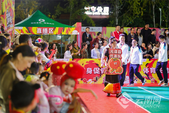 文艺表演结束后,来自楚雄州10个县(市)的12支参赛队伍依次入场。与此同时,楚雄州各地的农特产品随运动员一同亮相,元谋小番茄、武定壮凉鸡、南华松茸、姚安鲜切玫瑰等轮番登场,让观众大饱眼福与口福。参赛队伍中,有各个岗位的职工代表,也有返乡创业的菌农、电商运营者,他们以铿锵步伐展现“新农人”的拼搏风采。大赛奖项设置紧扣楚雄州“特色农业强州”定位,以本地特色农牧产品为核心奖励,实现“竞技名次”与“农业丰收”的双重馈赠,生动诠释“体育赋能产业、赛事带动经济”的创新实践。