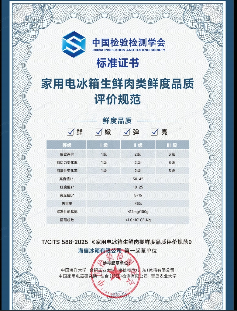 9月29日,由海信冰箱牵头制定的《家用电冰箱生鲜肉类鲜度品质评价规范》正式通过审定。这一行业首个肉类鲜度评价团体标准的出台,为冰箱保鲜性能建立了科学量化的评价体系,对生鲜资源丰富的云南而言,更精准契合了当地特色食材的储存需求。
