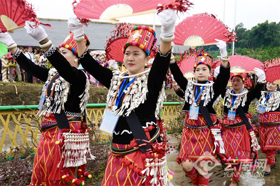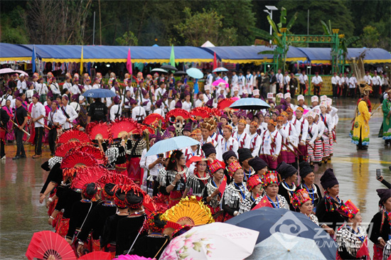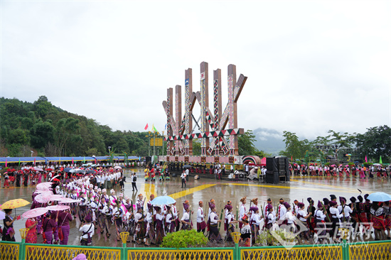 “哦然!哦然!”雄浑的呼号声响彻云霄,传递着边疆儿女对伟大祖国的深情礼赞。展演队伍中,除景颇族外,还有傣族、阿昌族、德昂族、傈僳族等各族儿女身着独具特色的节日盛装,汇聚成一道流动的彩虹。不同风格的民族服饰在阳光下交相辉映,各美其美、美美与共,绘就了一幅绚丽多彩的民族团结生动画卷。