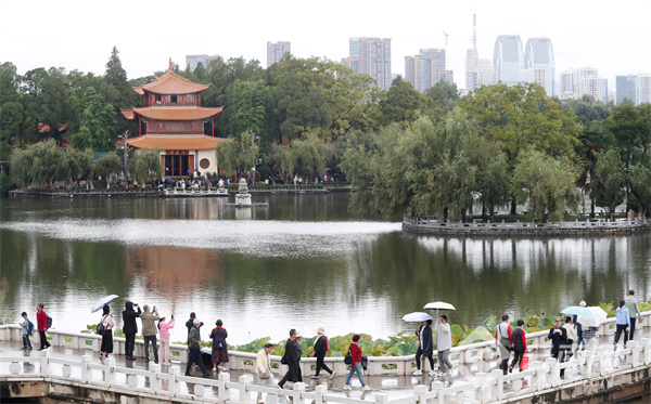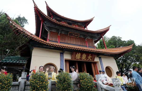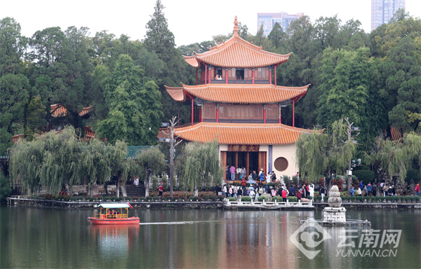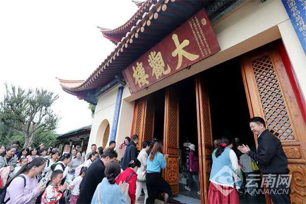 10月1日上午10时,中国十大名楼之一的昆明大观楼举行开楼仪式,名楼重放光彩为国庆献礼。这是大观楼历经一年多修缮后重新对游客开放。