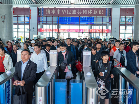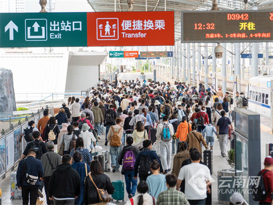 云南网讯(记者 夏方海 通讯员 韩富关 刘子健)记者从中国铁路昆明局集团有限公司(以下简称“国铁昆明局”)获悉,10月1日,云南铁路客流增幅明显,国铁昆明局单日发送旅客超60.6万人次,同比增长13.8%,创历史新高。其中,昆明站和昆明南站共计发送旅客超30万人次,同比增长19.2%。