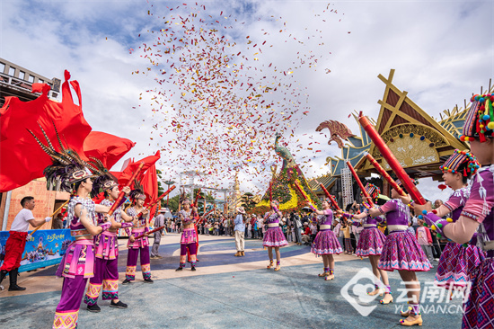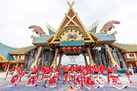 国庆期间,七彩云南•古滇度假区作为云南民族主题乐园的“标杆”,为游客们献上一场场精彩纷呈的民族文化盛宴,园区推出了系列民族演艺项目。活动汇聚了来自云南的多个世居民族的代表性歌舞节目。藏族的《迎宾舞》以热情奔放的节奏迎接八方来客;纳西族的《茶马踏歌》再现茶马古道的千年遗韵;基诺族的《基诺山的回响》与布朗族的《布朗采茶来》,则生动展现了独特的民族风情与生产生活场景。压轴登场的大型巡游演艺《盛世欢歌》由多民族演员方阵与精美花车共同组成巡游队伍,沿主环道行进,形成一道流动的风景线,引来沿途游客阵阵掌声与互动,现场洋溢着喜庆祥和的节日气氛。