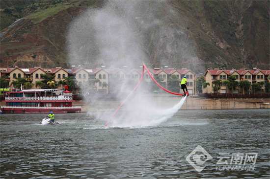 10月1日,正值国庆佳节,“临港左岸•向水而行”2025云南东川港首届水上飞人、动力冲浪板公开赛在东川港开幕。
